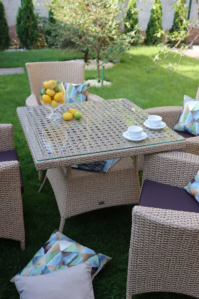 - Устойчивость к солнечным лучам: Мебель должна выдерживать продолжительное воздействие ультрафиолетового излучения, не выцветать и не терять прочности. Мебель из экоротанга и пластик устойчивы к солнечным лучам.