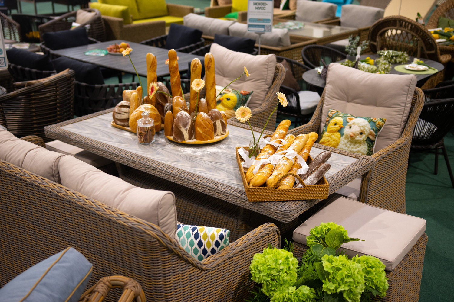 - Ротанг: высококачественная ротанговая нить, устойчивая к внешним воздействиям, изготавливаемая на современных станках с добавлением красителей на стадии производства.