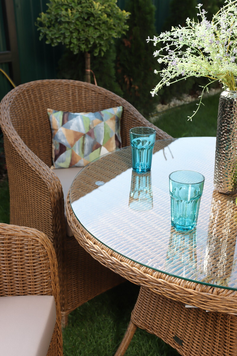 - Для мебели, которая будет использоваться на террасе или в саду, важно выбирать материалы, устойчивые к солнечному излучению, дождю и влажности.